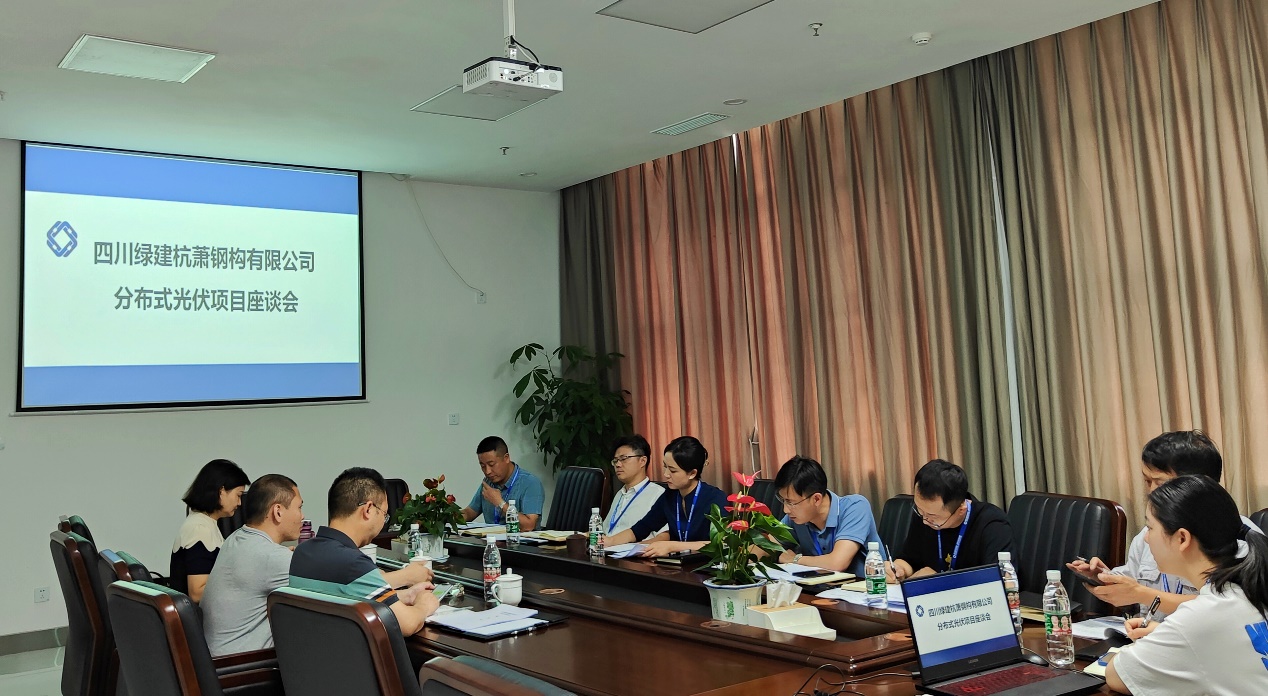 2022年6月30日上午,四川綠建杭蕭鋼構(gòu)有限公司(以下簡稱:綠建杭蕭)與四川省能源投資集團有限責(zé)任公司相關(guān)負(fù)責(zé)人共同召開分布式光伏項目座談會。綠建杭蕭總經(jīng)理古敏同志攜領(lǐng)導(dǎo)班子與相關(guān)部門負(fù)責(zé)人參加會議。
